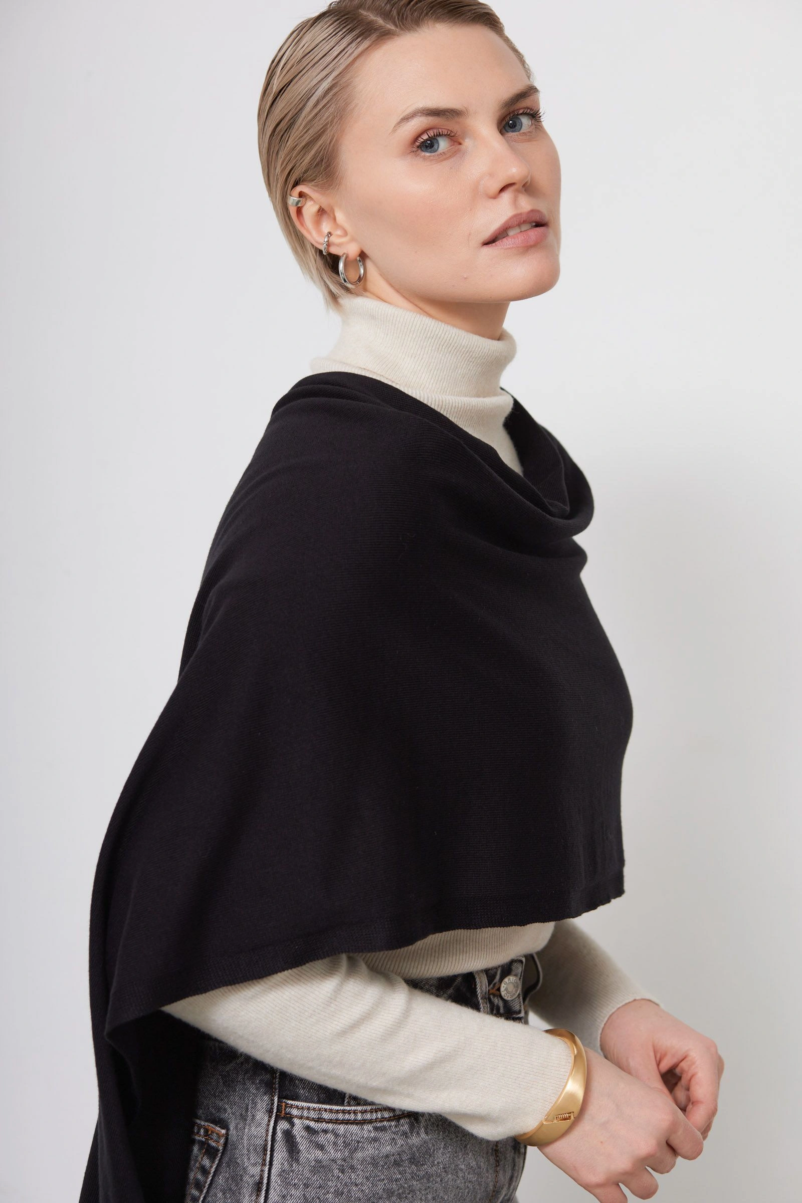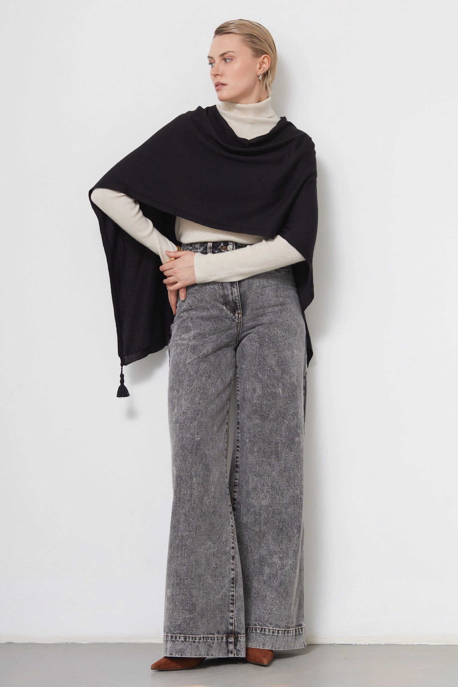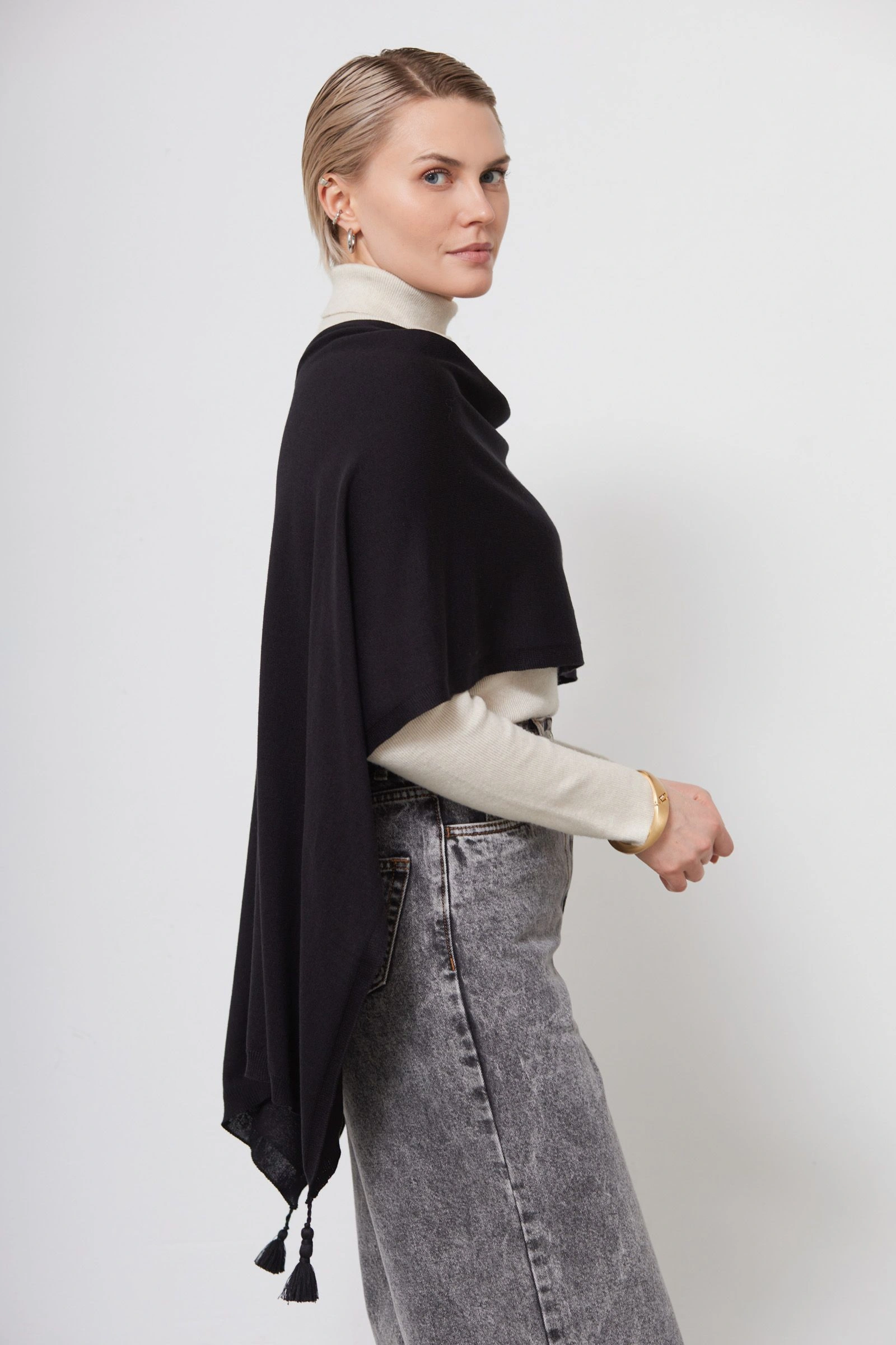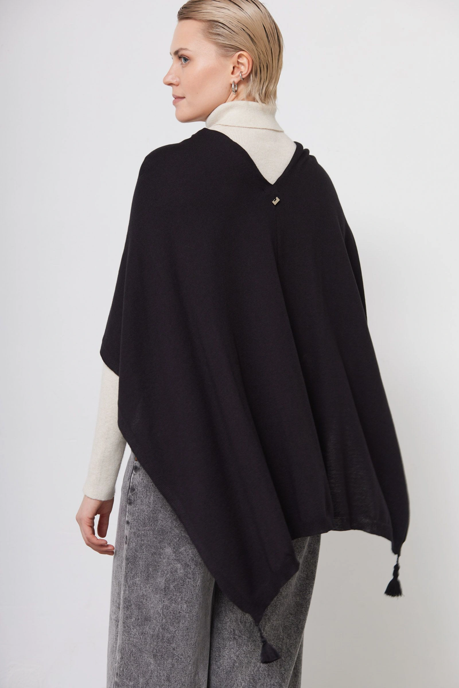 Шарф-накидка с кисточками