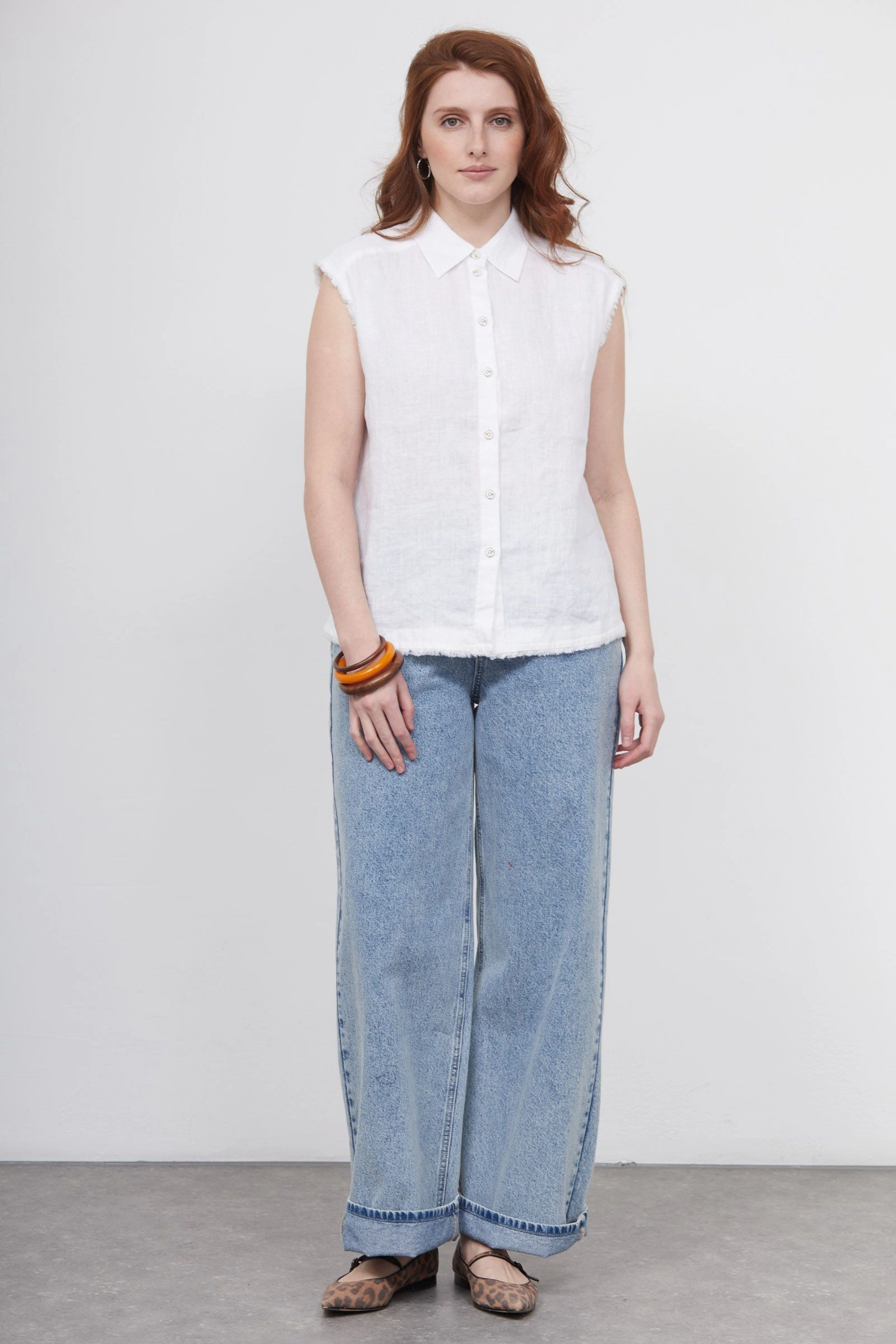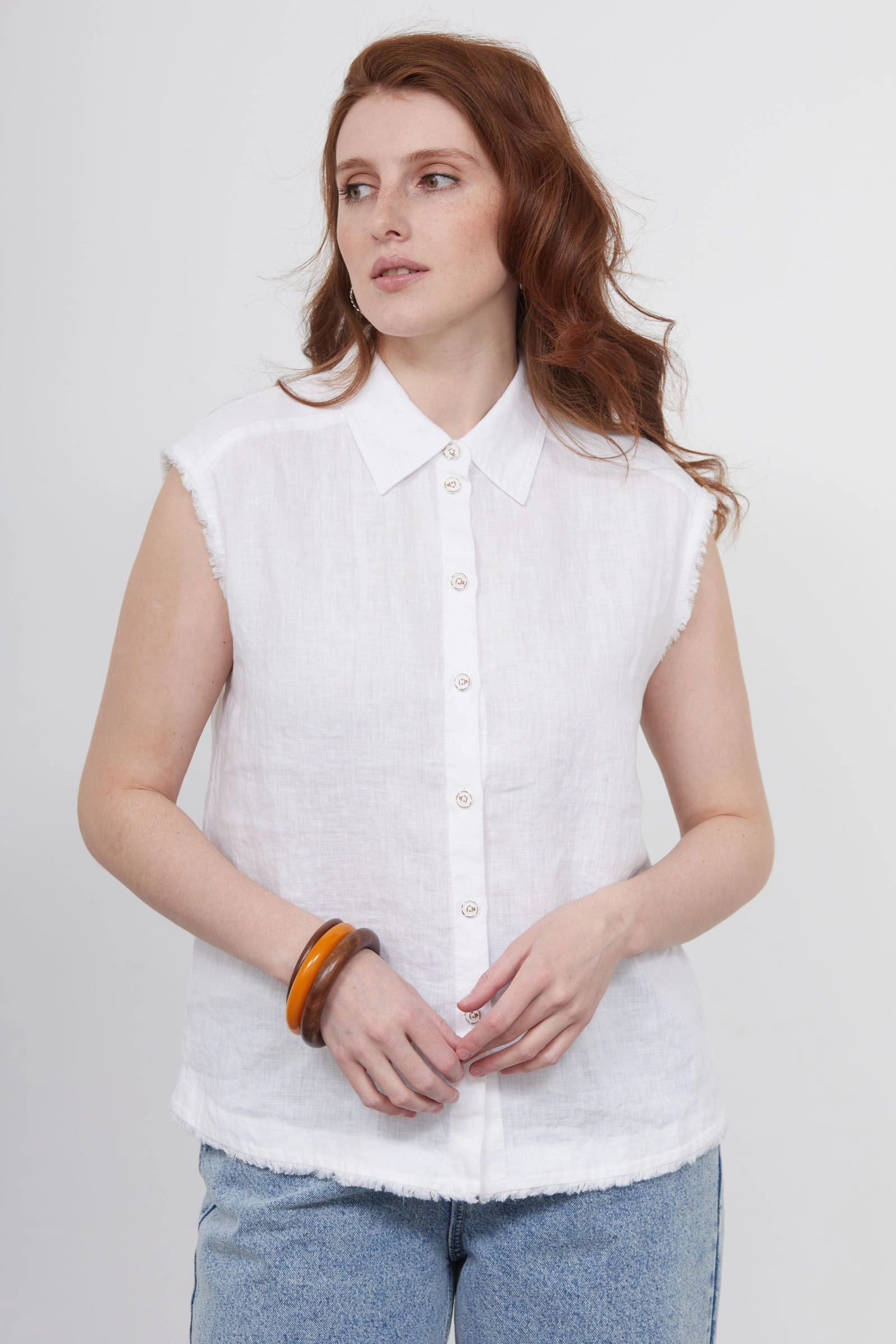 Рубашка изо льна без рукавов
