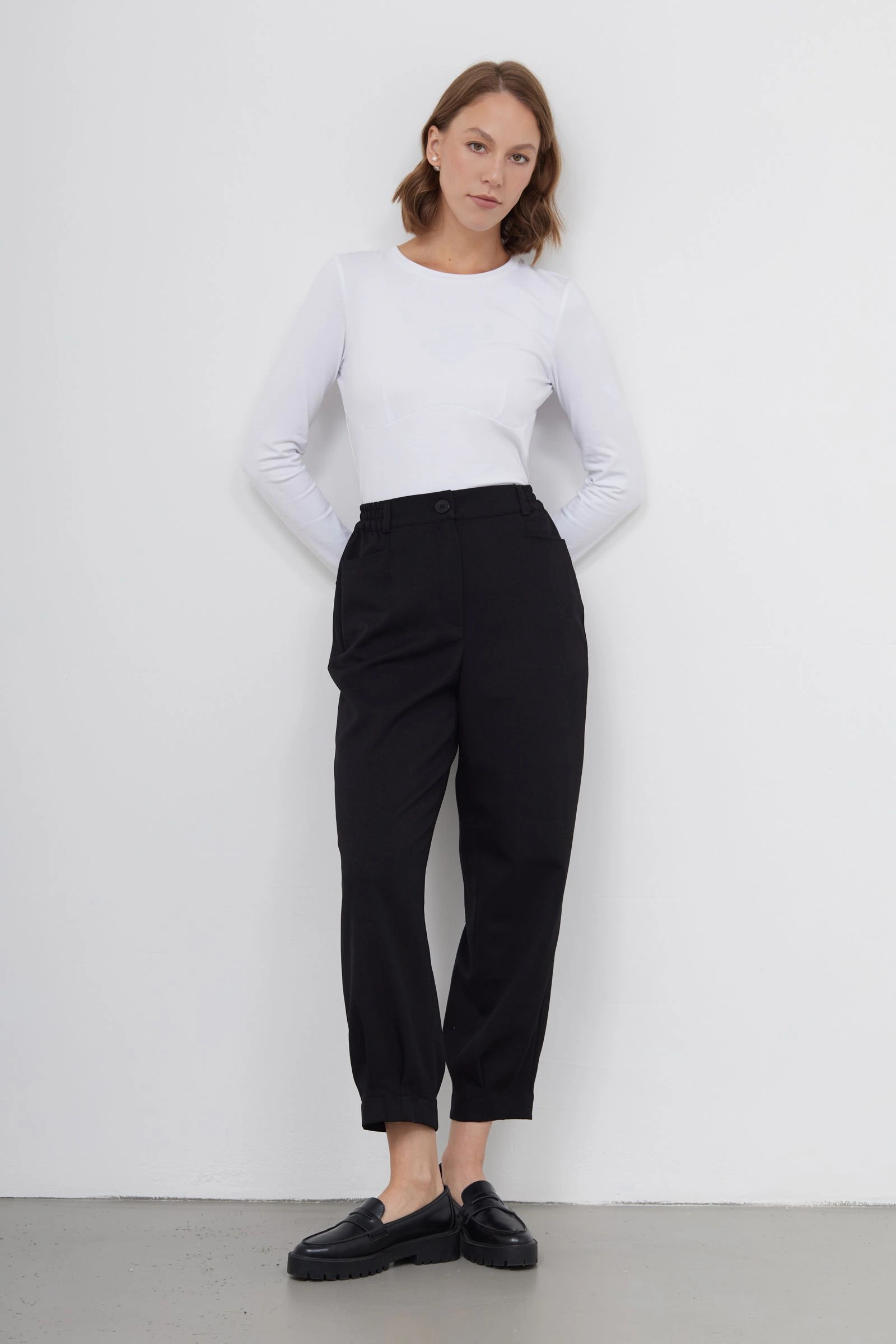 Брюки слоучи с защипами