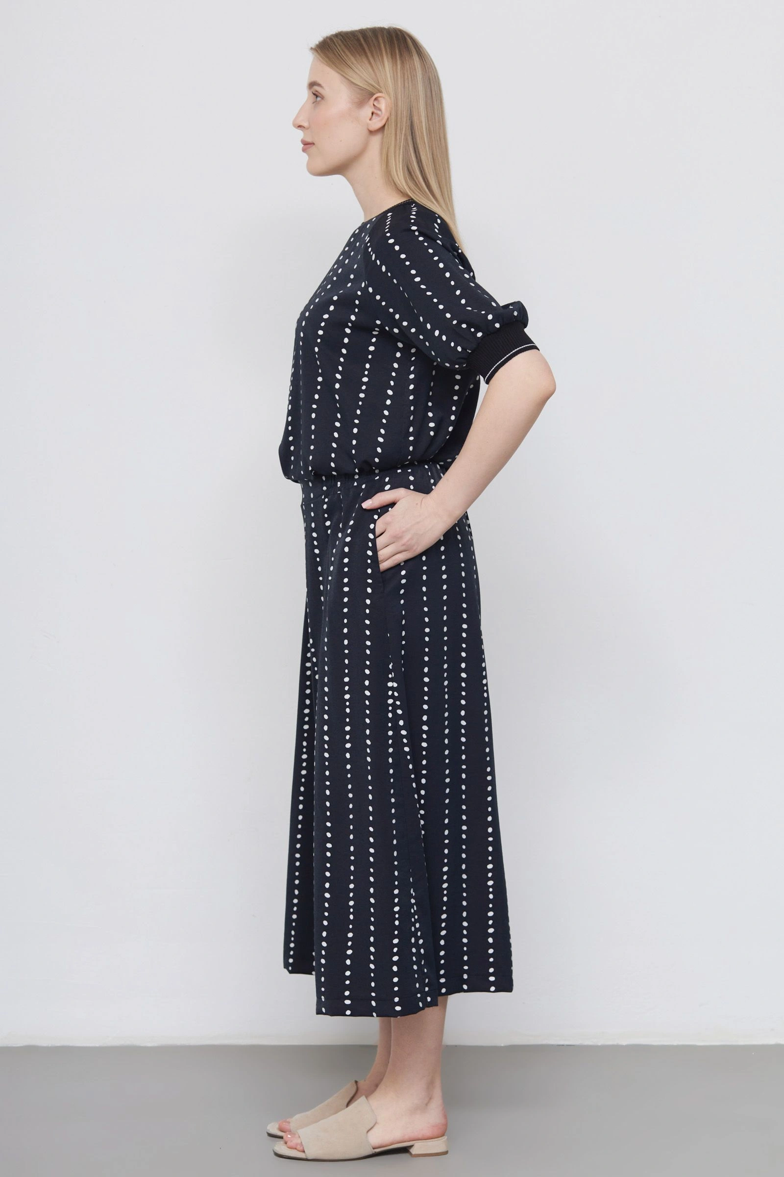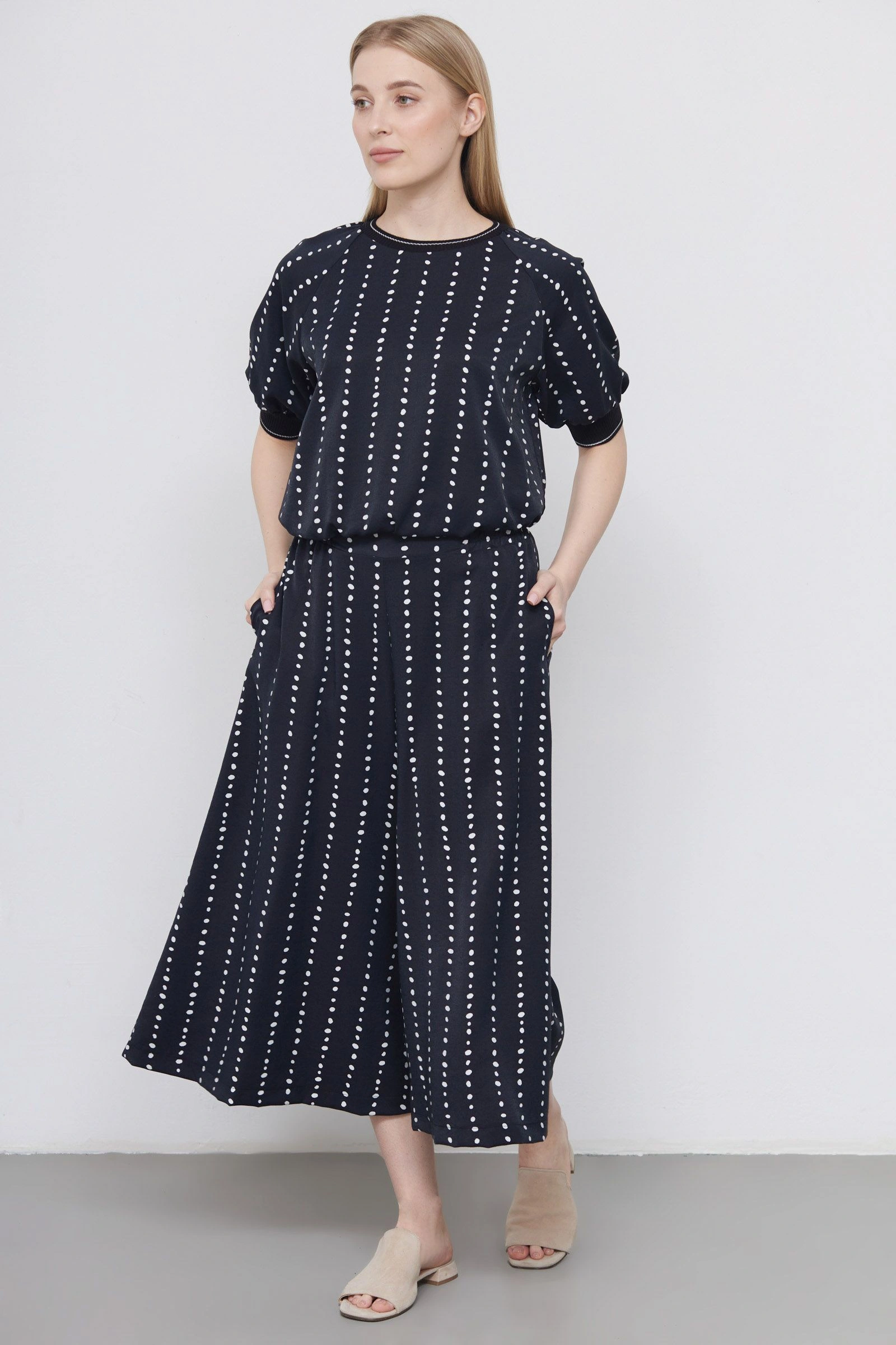 Юбка-брюки из вискозы в горошек