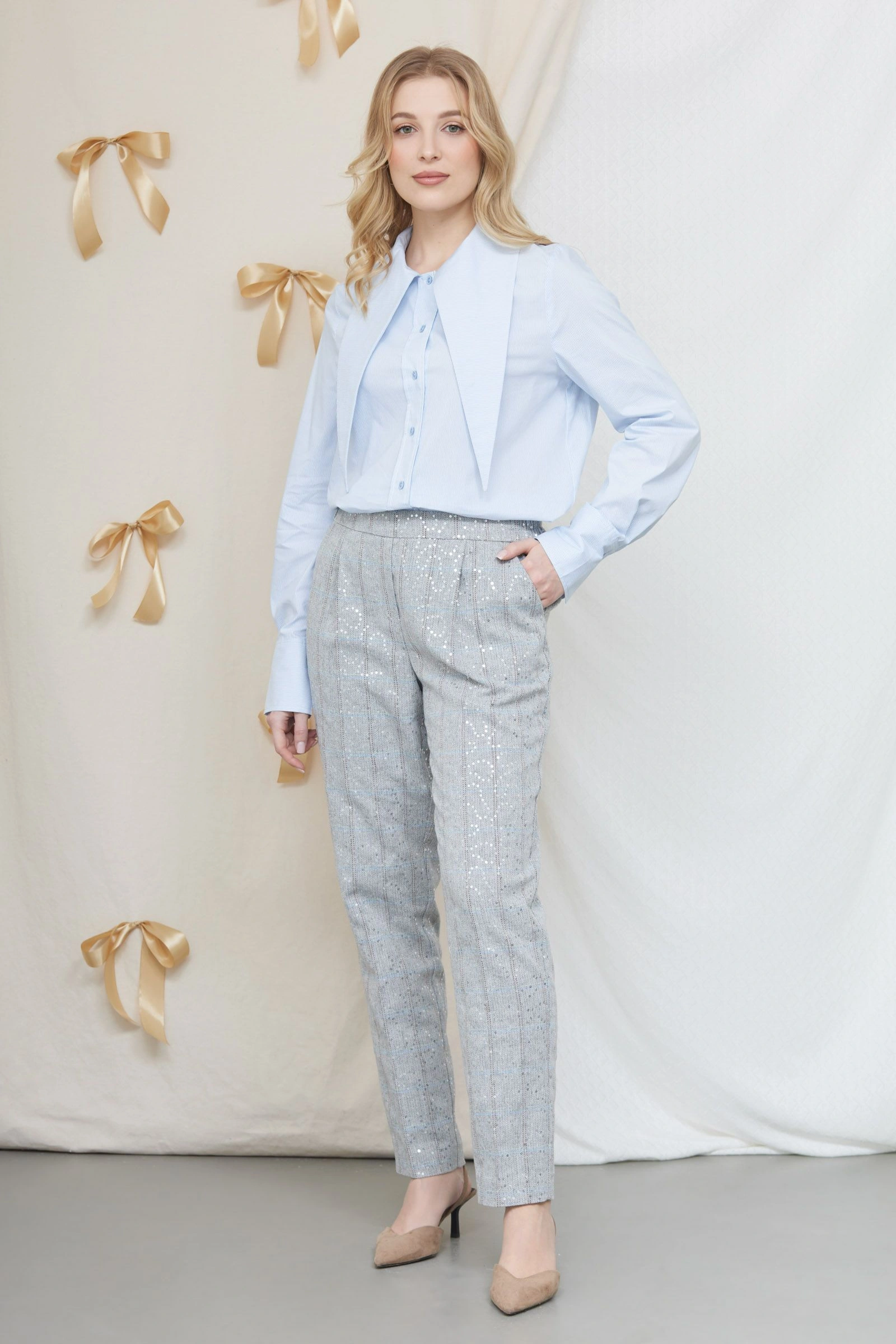 Брюки в клетку с пайетками