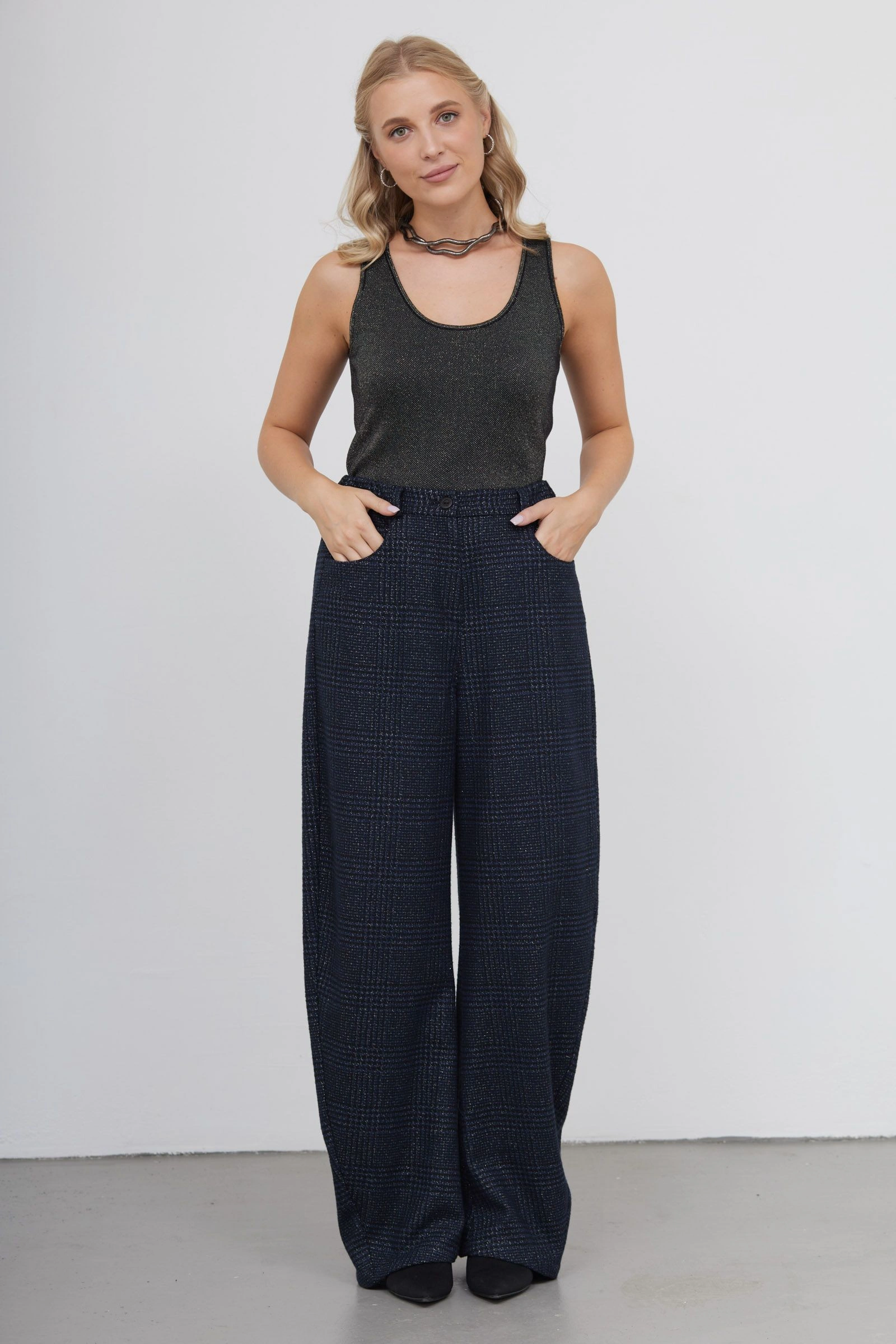 Брюки в клетку с люрексом