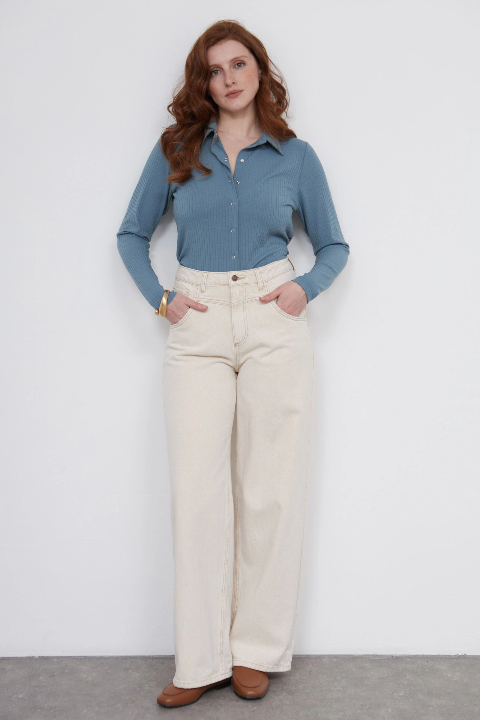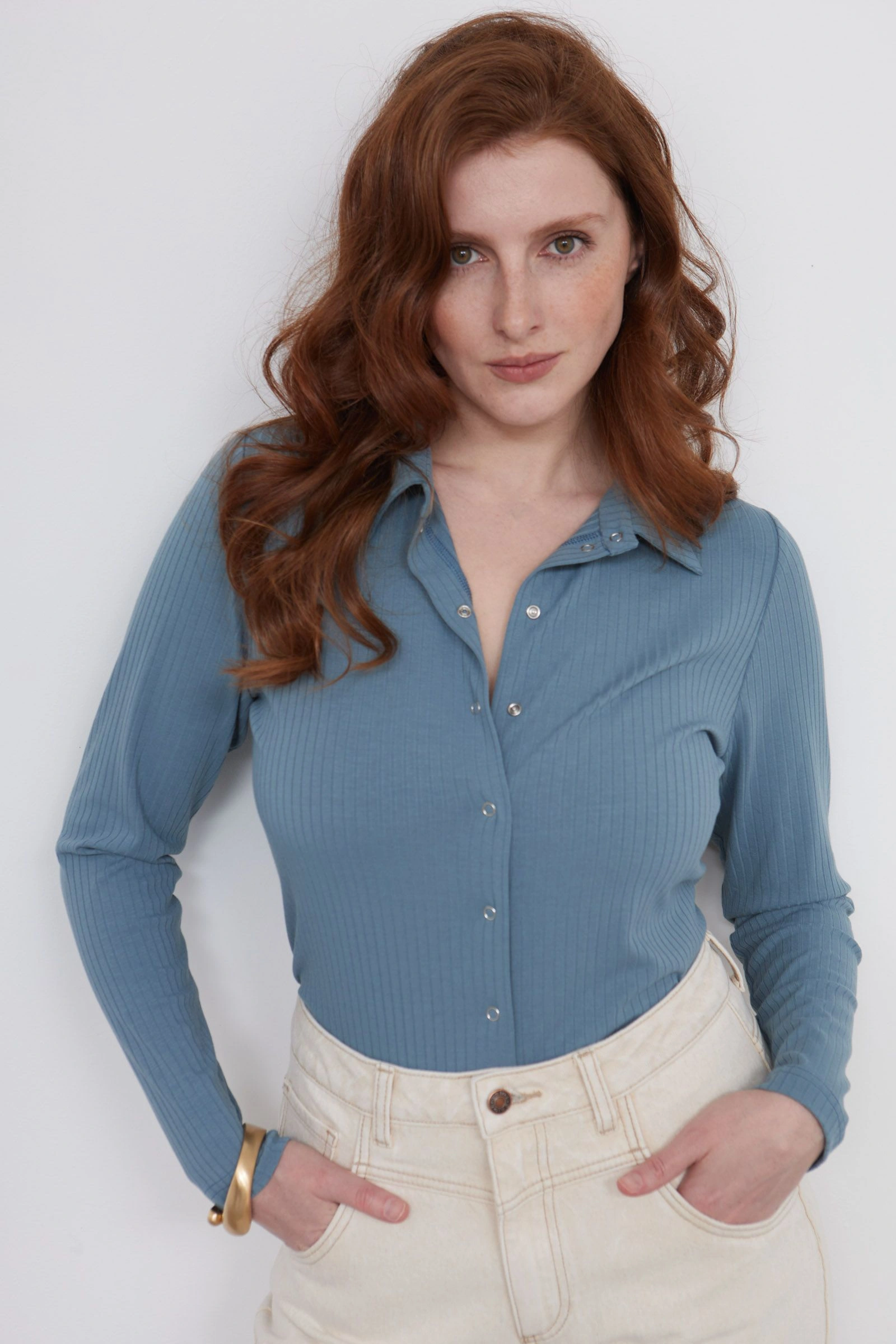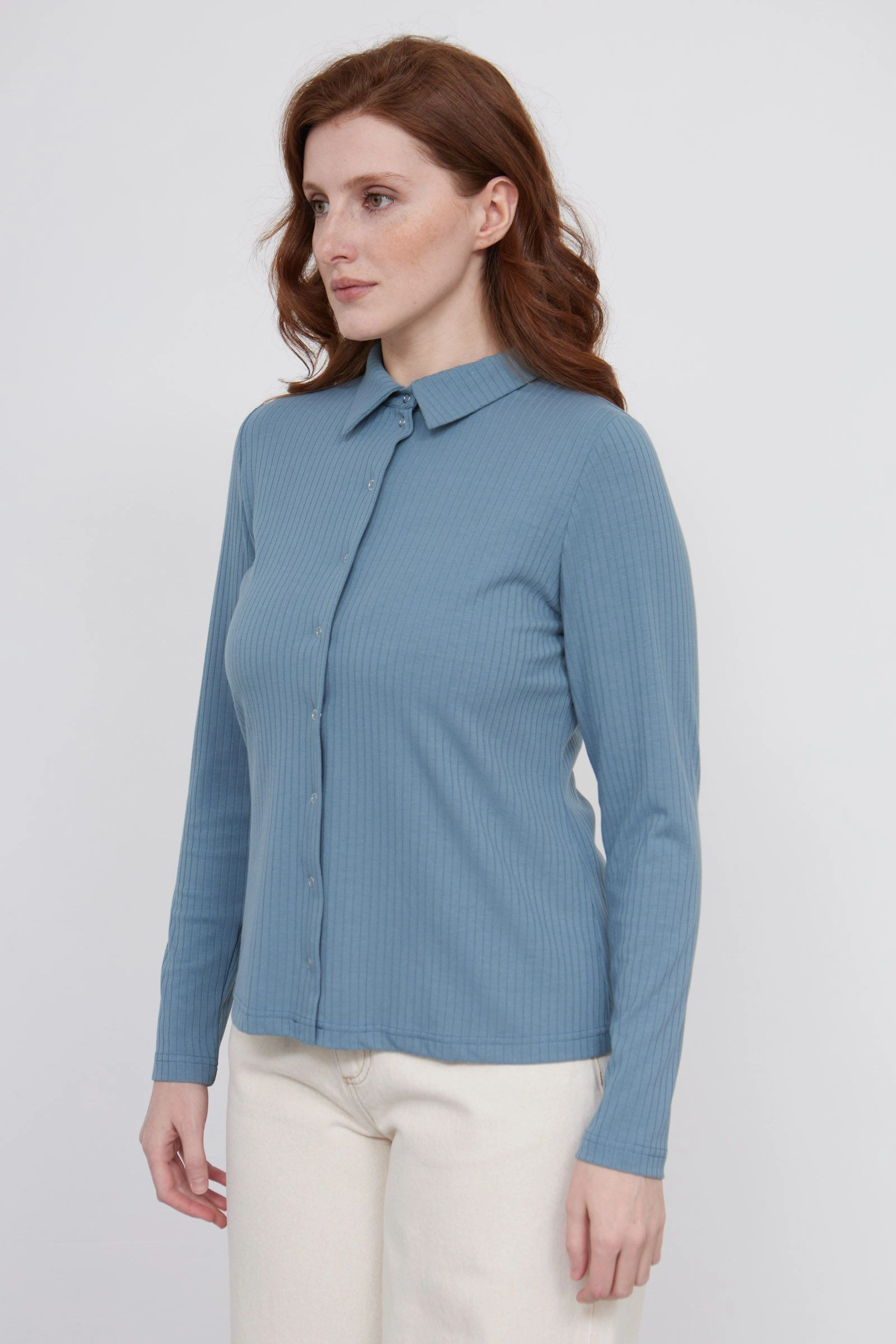 Блузка в рубчик на кнопках