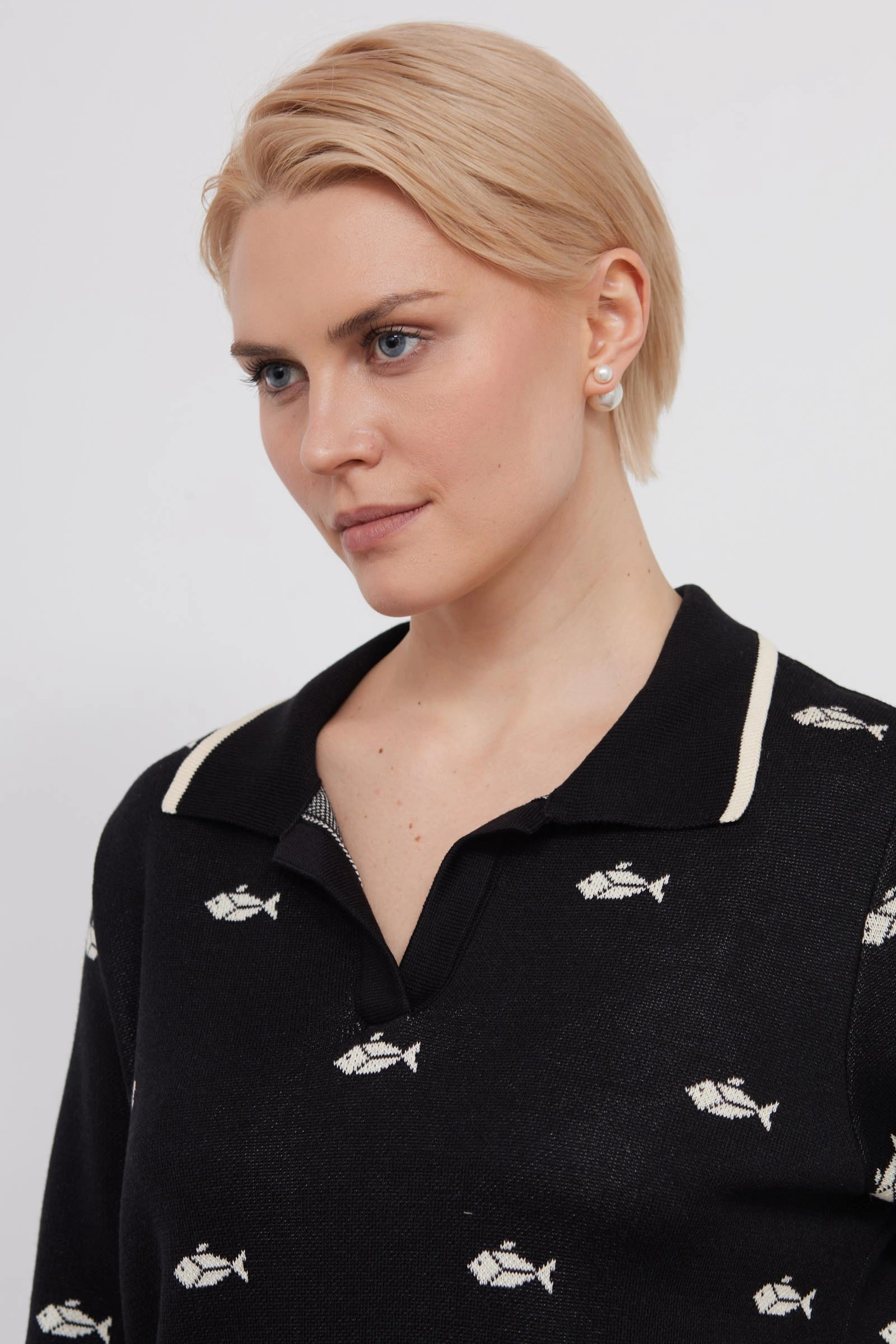 Джемпер-поло жаккардовой вязки