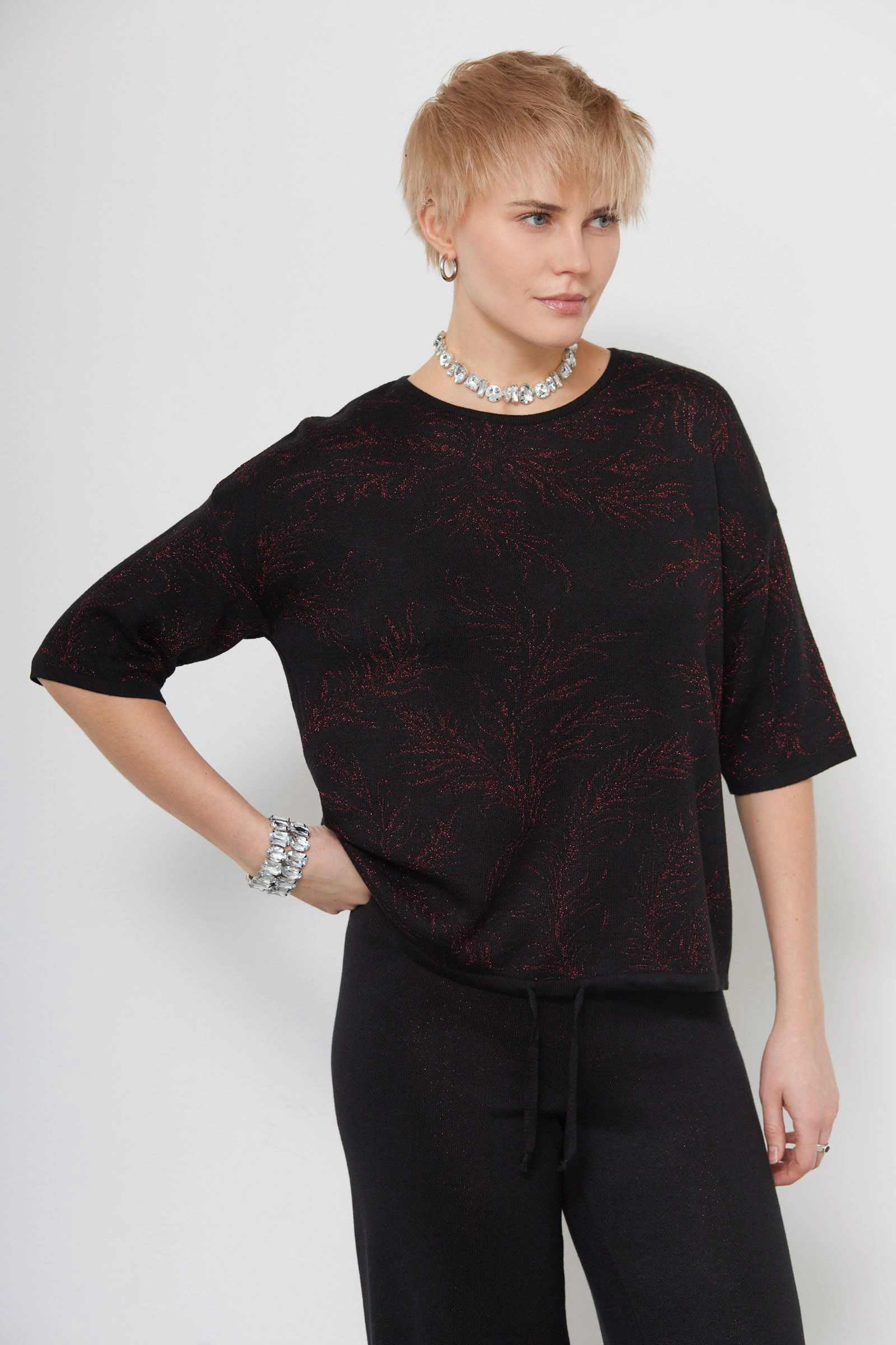 Джемпер с рисунком из люрекса