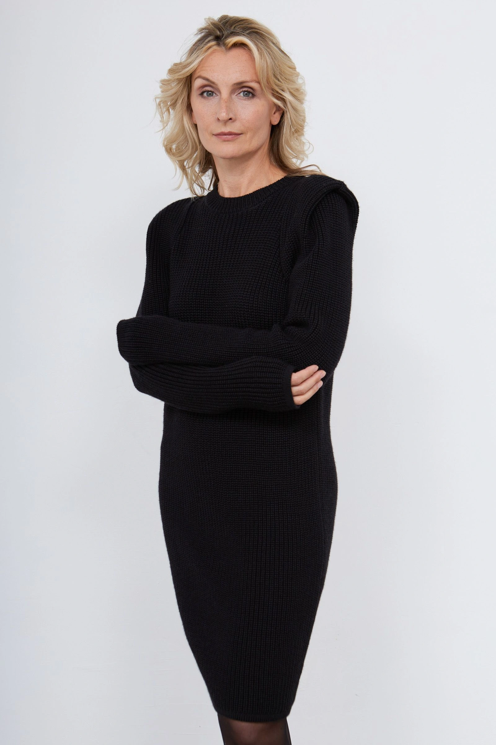 Платье вязаное с акцентными плечами