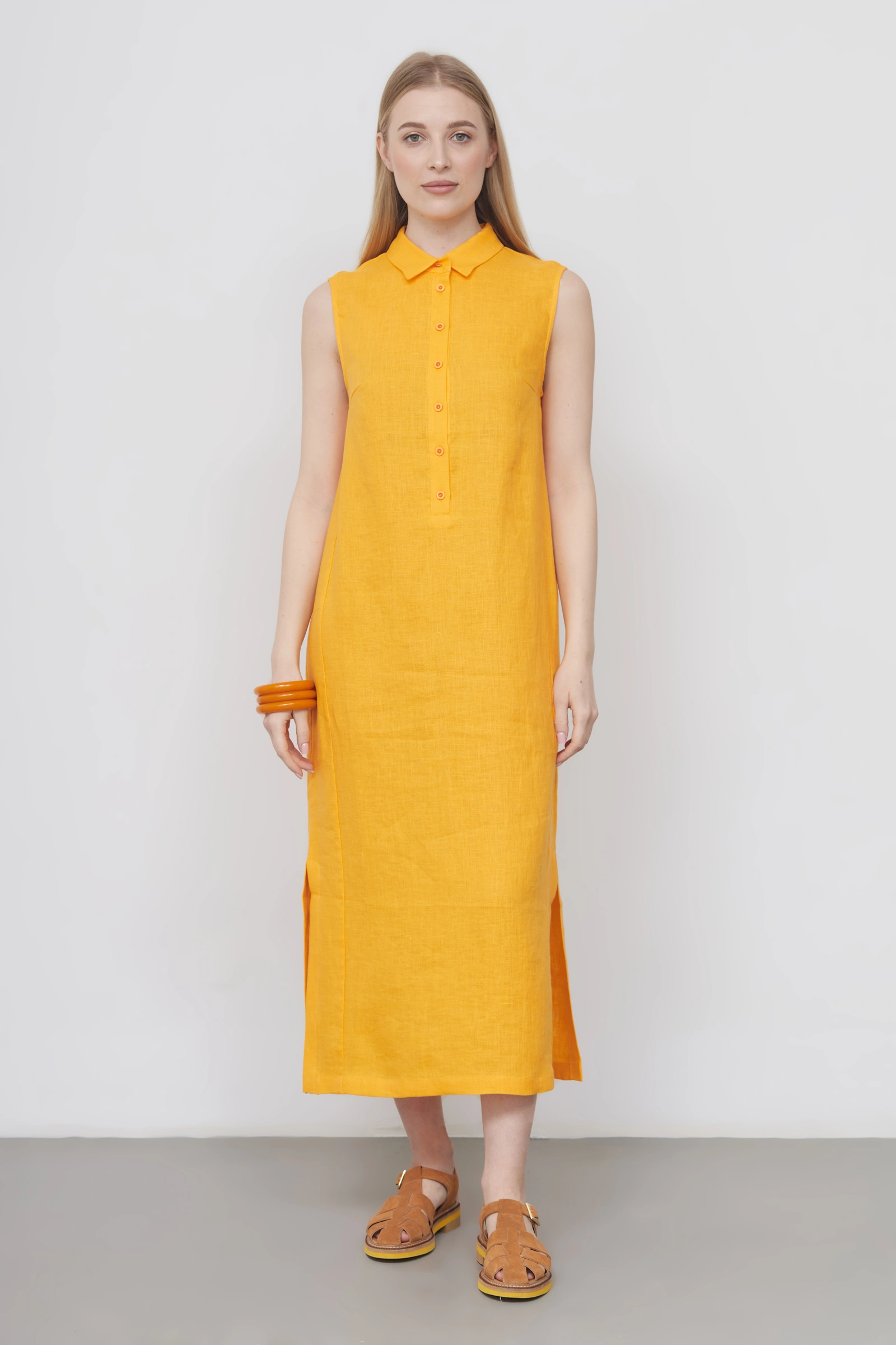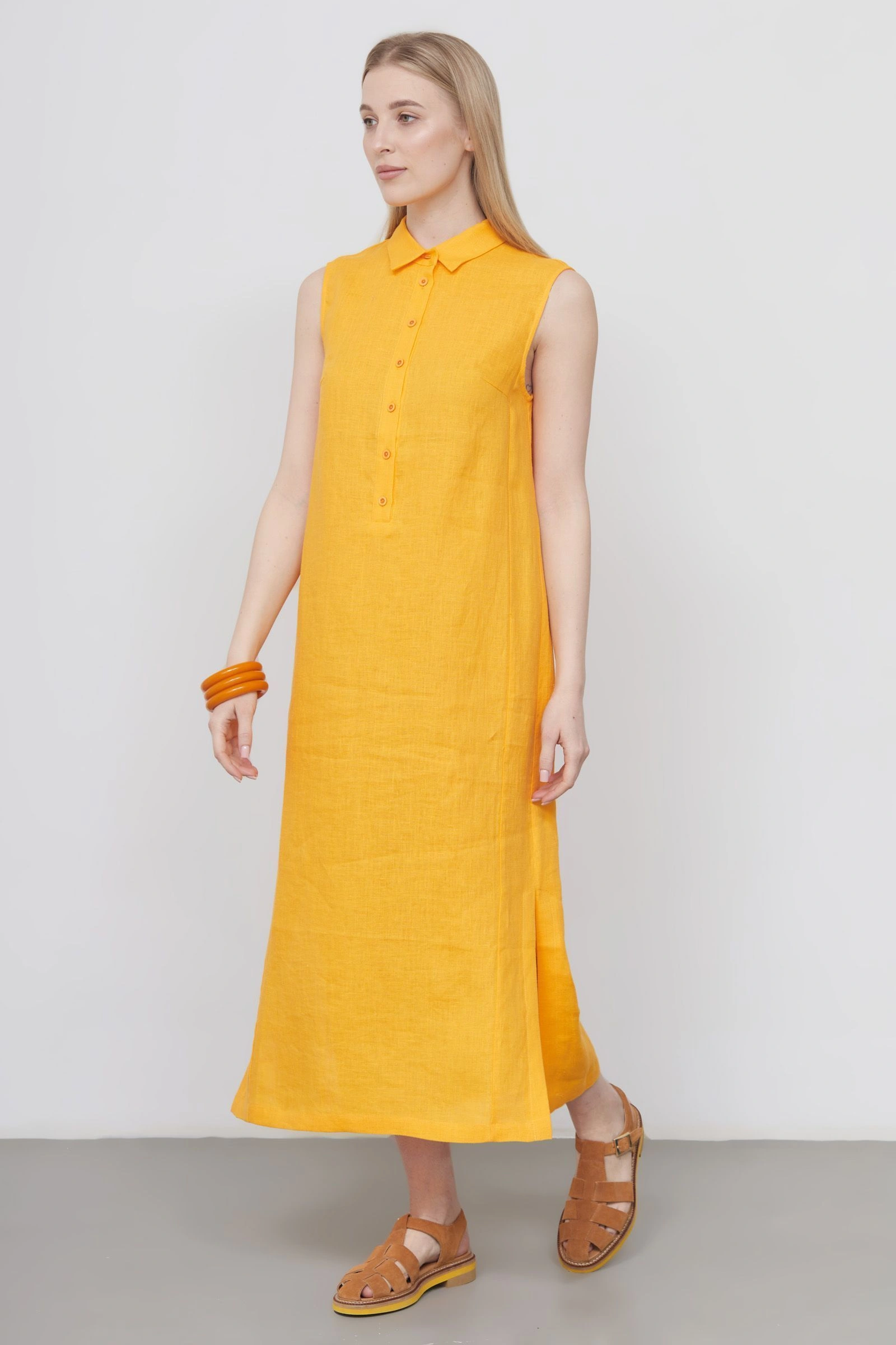 Платье изо льна с разрезами