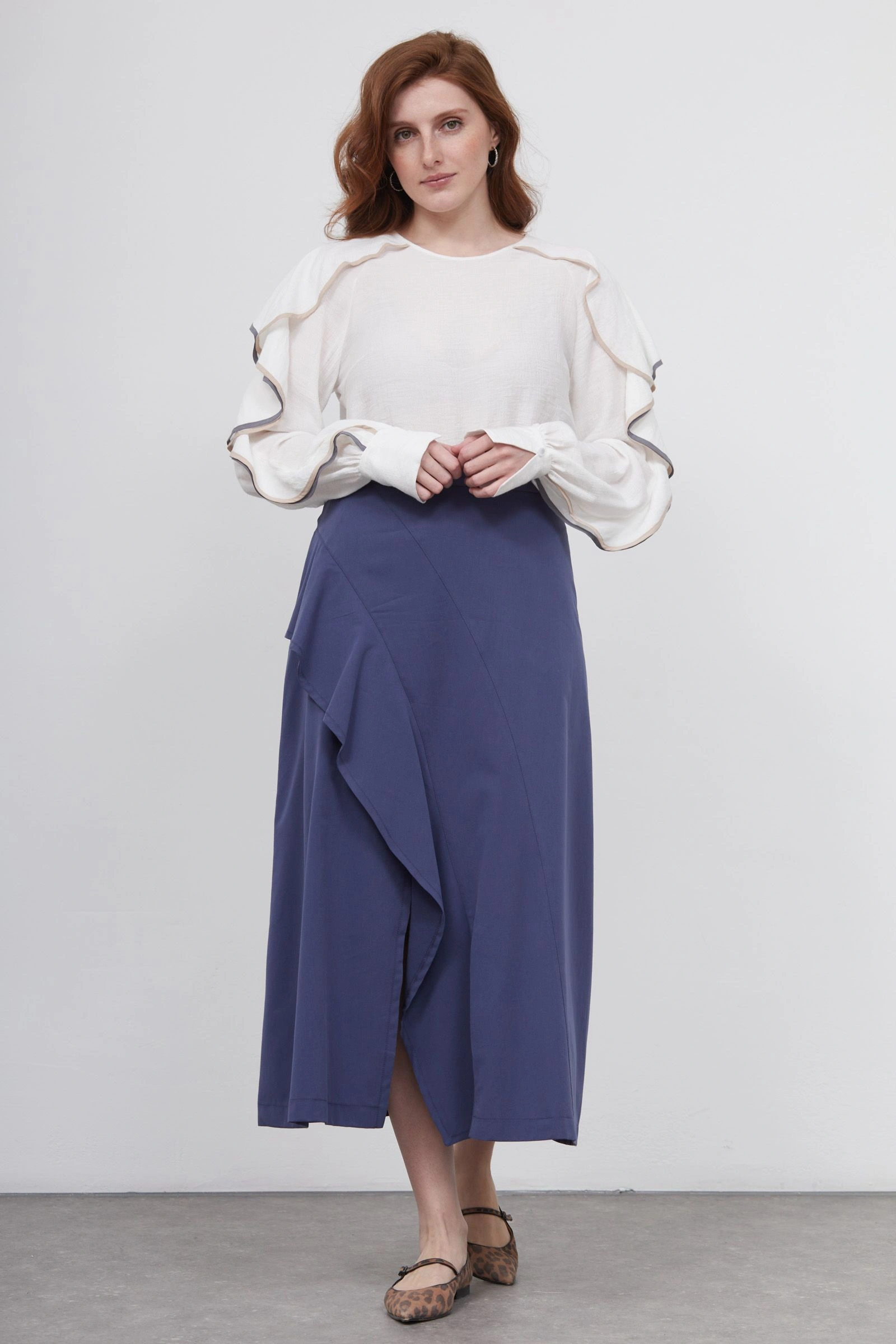 Юбка миди с воланом
