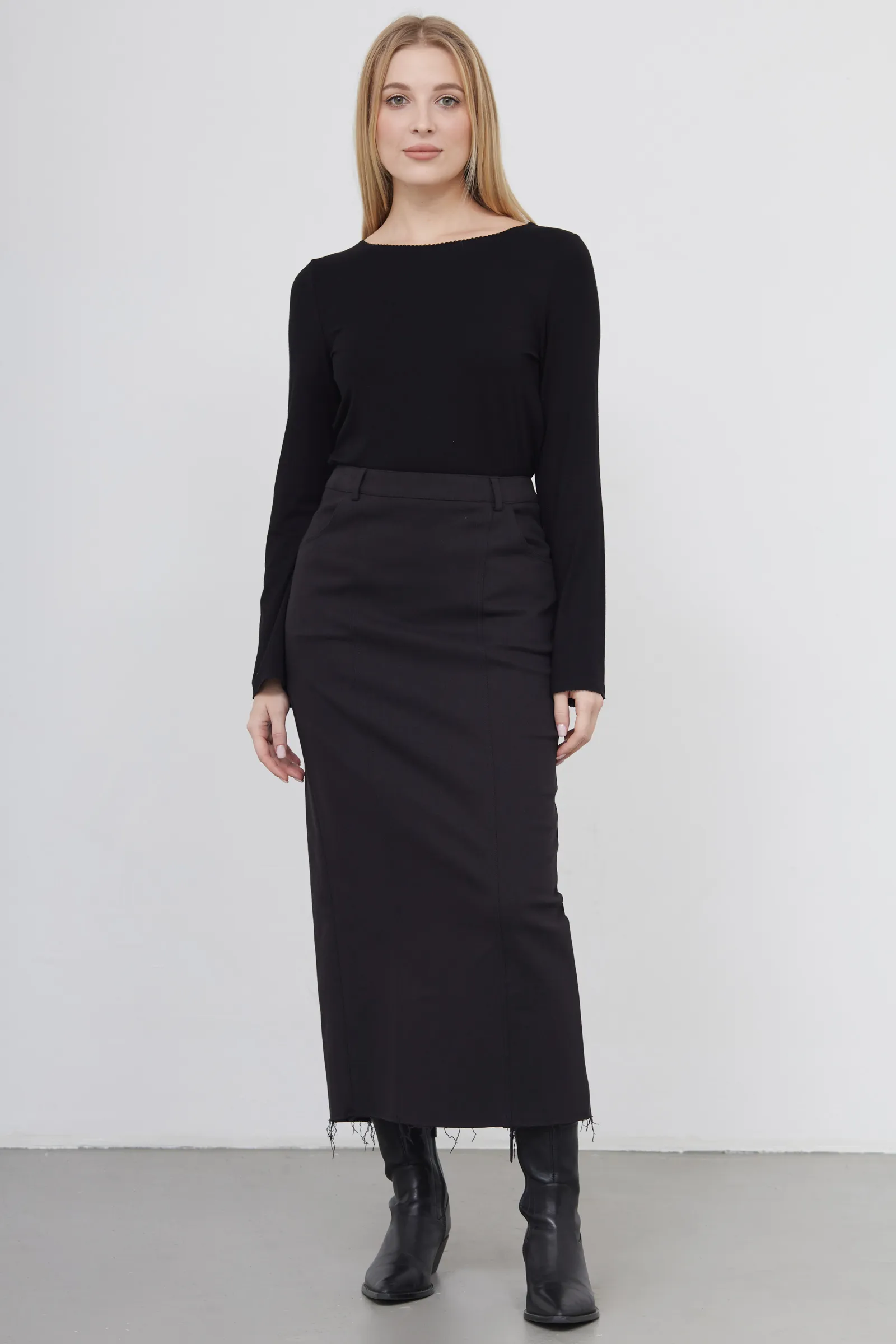 Юбка миди из денима с разрезом