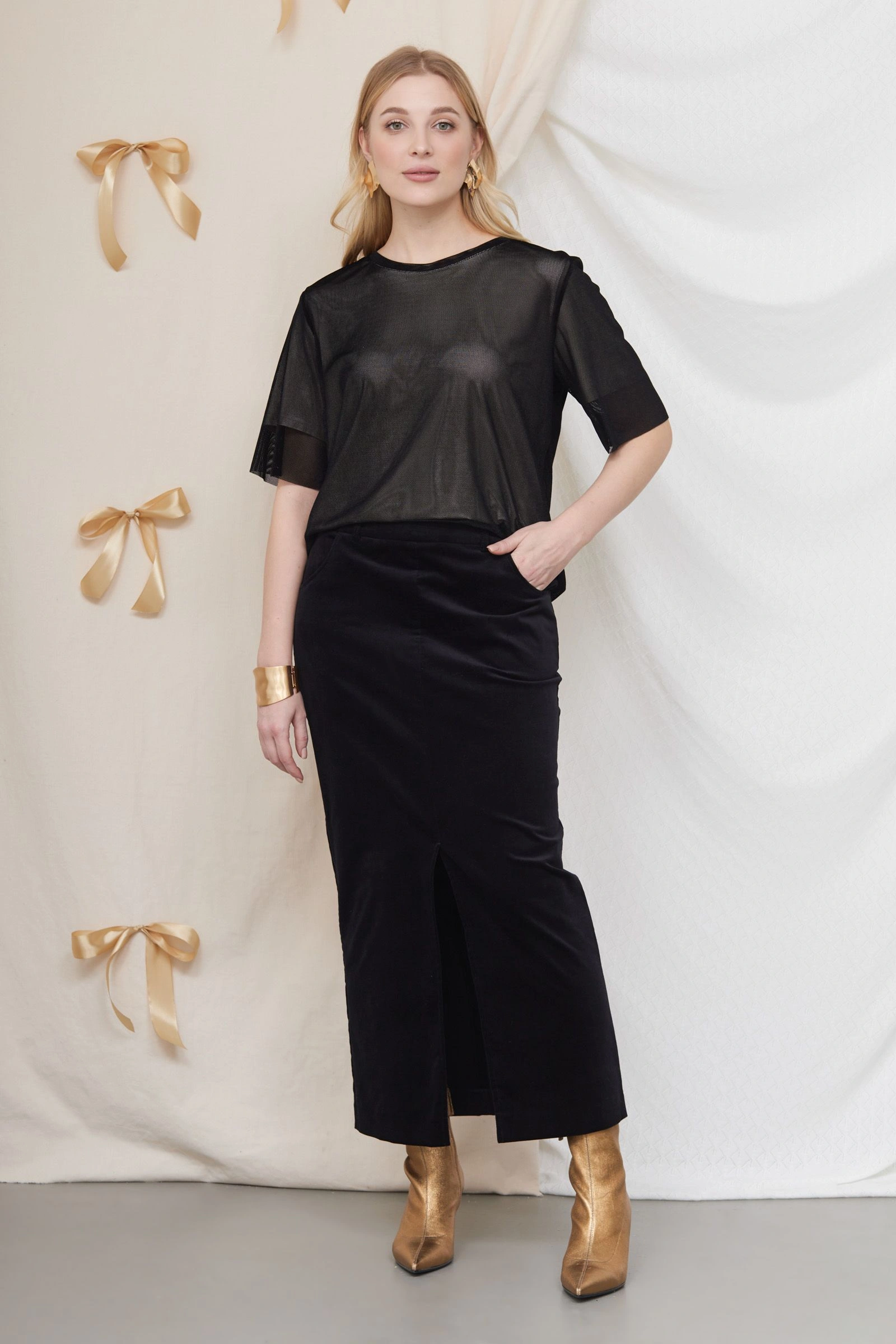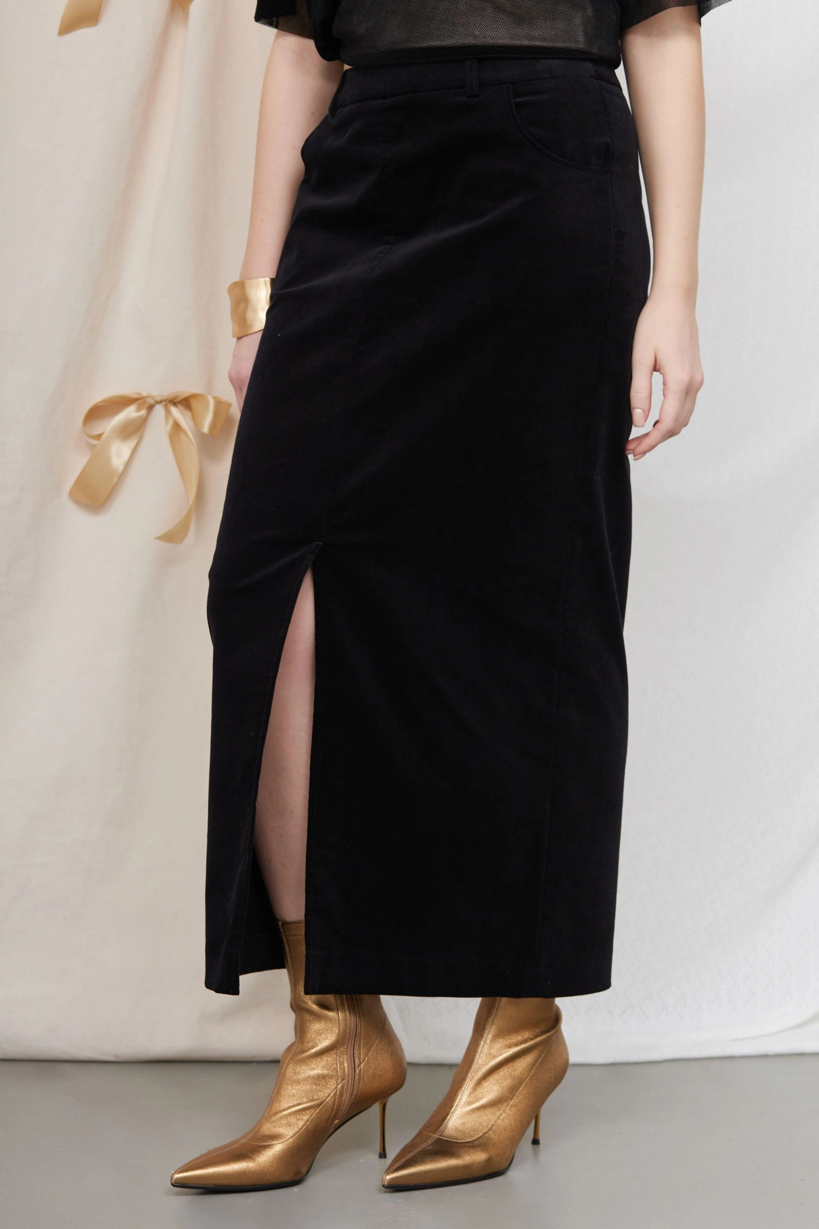 Юбка миди из велюра