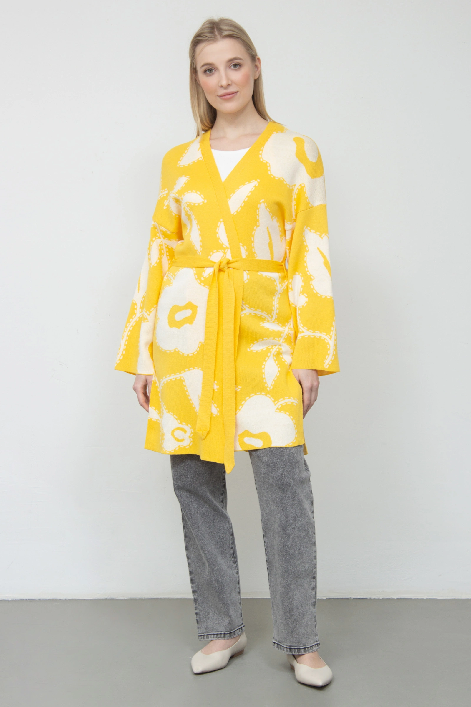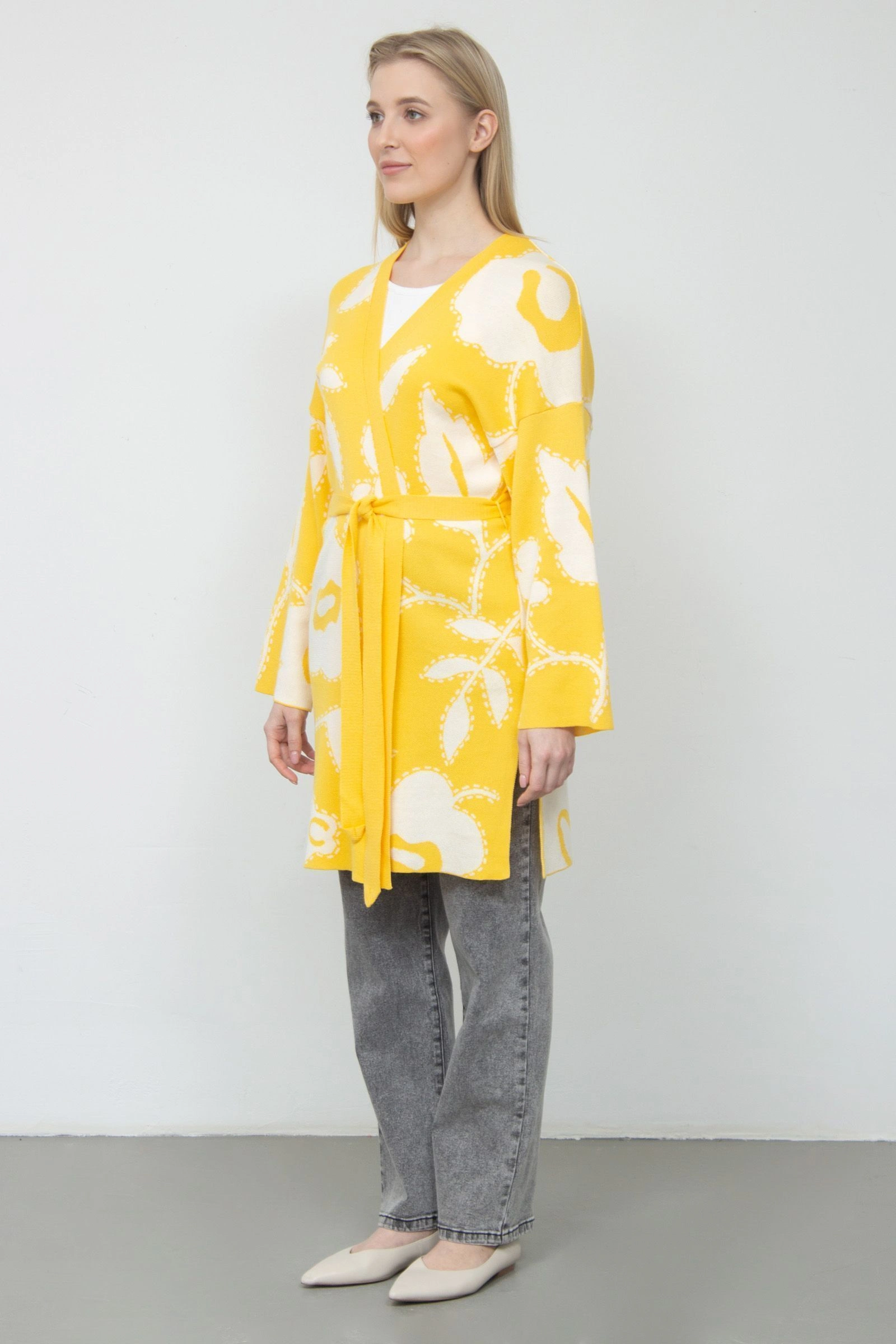 Кардиган жаккардовый с поясом