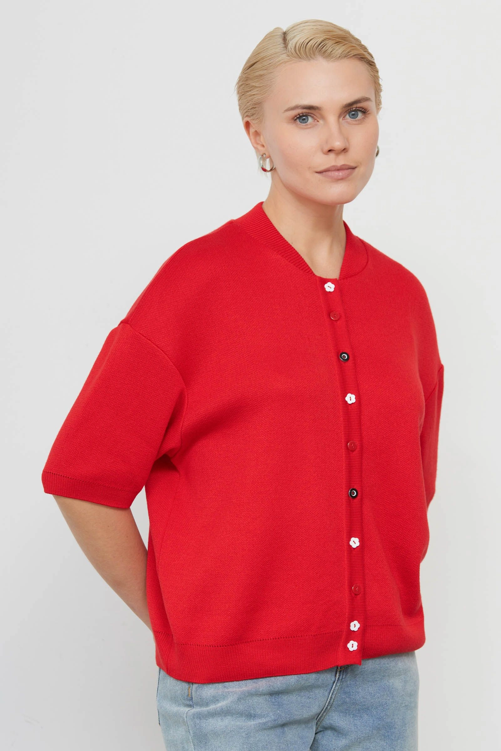 Кардиган-бомбер с разными пуговицами