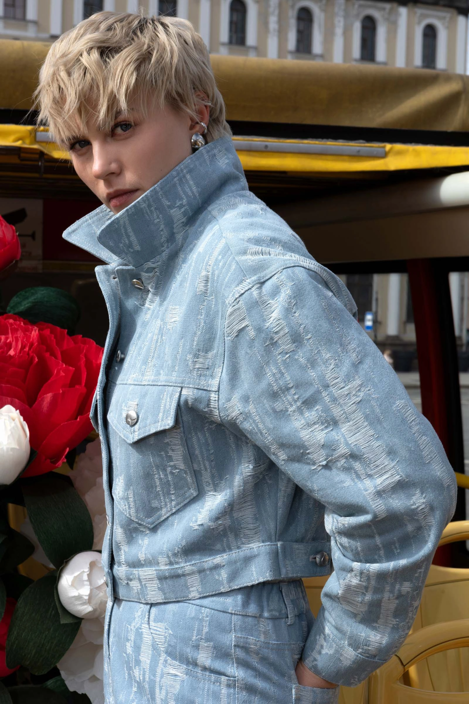 Куртка джинсовая с рваным эффектом